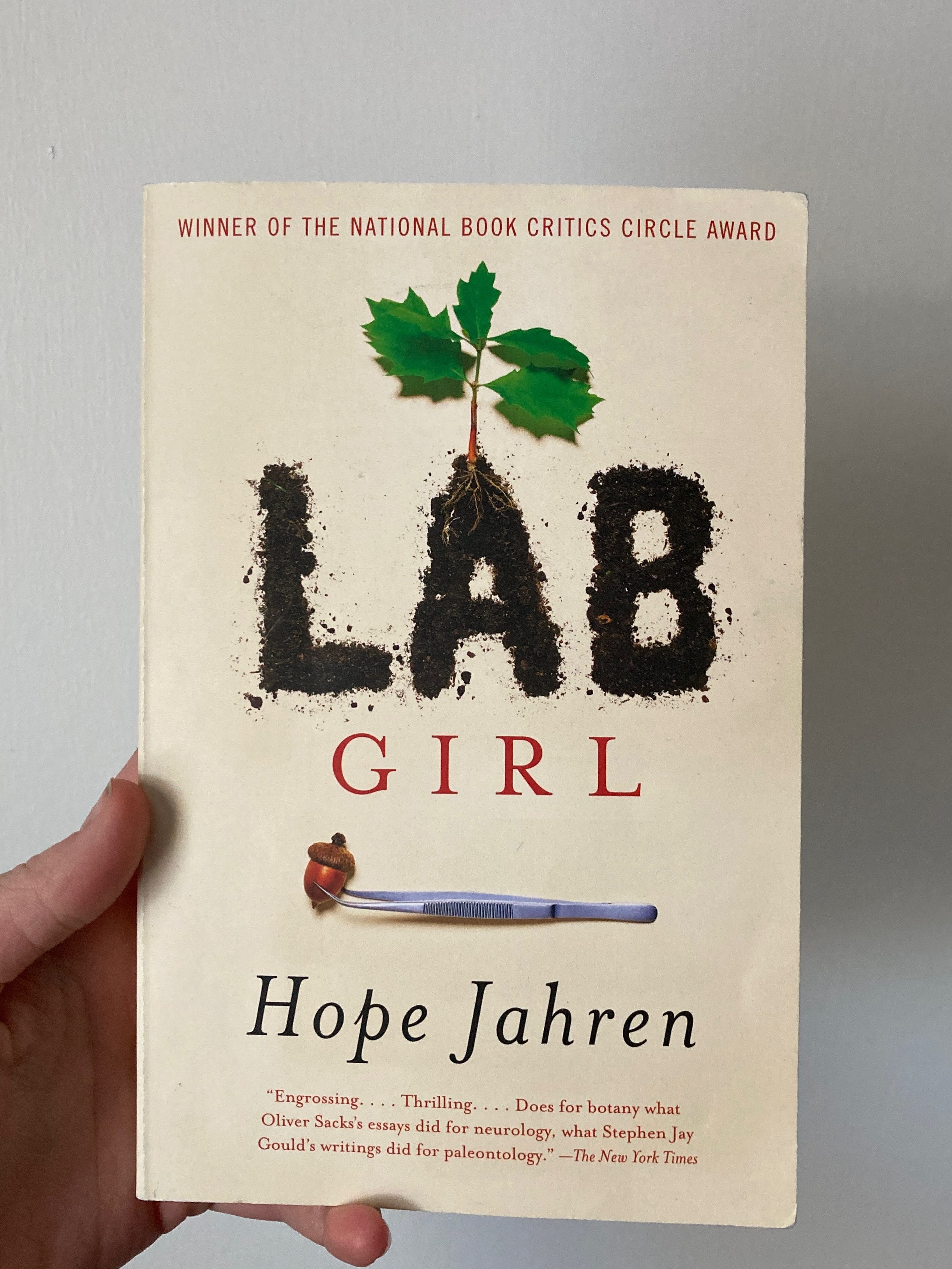 I had to read this memoir for class, which for me is never a good sign. However, I LOVED this book. It is beautifully written with a perfect mix between science and Jahren’s personal story. Jahren–an award winning scientist– wrote one of the most sincere memoirs. I loved it.